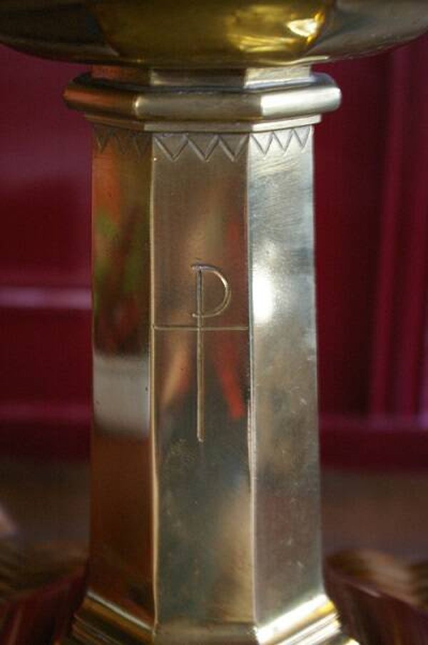 Zwaar massive koperen kerkkandelaar, incl kaars