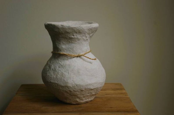Mooie ruwe witte vaas van papier-mache van het merk Go Round hoog 19.5 breed 15.5 cm.